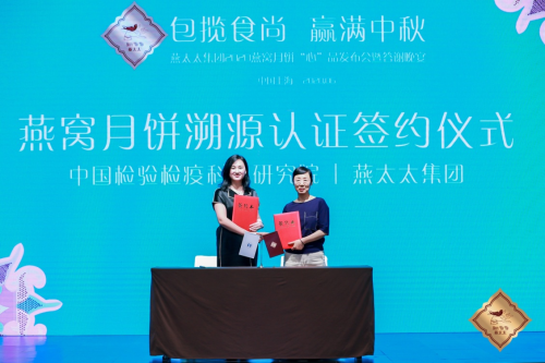 本次发布会,中国检验检疫科学研究院食品安全 HACCP 应用研究所李立副所长与燕太太集团总经理LILY女士正式就燕窝月饼溯源认证进行合作签约,这标志着燕太太燕窝月饼正式进入燕窝原料溯源认证新时代。
